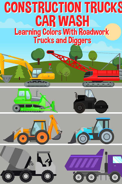 Construction Trucks Car Wash - Learning Colors With Roadwork Trucks and Diggers