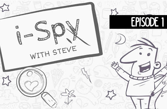 Steve and his dog Scribbles like to play a game of iSpy. Scribbles thinks of a specific image, and Steve and viewers have to look through a big picture and find the image.